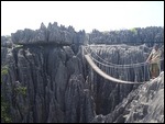 Wow! Ya. Don't think I'd be getting on that rope bridge. Nuhhh uh! Another great thing about the good US of A. Safety regulations, OSHA, to name a few. Unless a whole village depended on it for water or food transportation, so you know someone was constantly making sure it was good, I'd do exactly what you did, take a picture of it! Your one friend was thinking Shrek. Me? Indiana Jones. The rocks? Lara Croft/Tombraider. I giggle everytime you talk about Pat and his tapeworm. Hilarious. And I notice your guide is the first I've seen wearing the THB shirt! HA! What a great Dad though to take his boy along.Did you use the harnesses at all, or were you harnessed together so if one fell the rest of you could counterbalance? The slot canyons looked great!Jessica